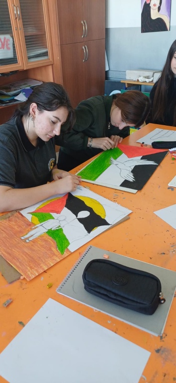 Filistin Farkındalıık Etkinlikleri kapsamında Görsel Sanatlar Öğretmenimiz Orhan UÇAK rehberliğinde resim çalışmaları yapıldı